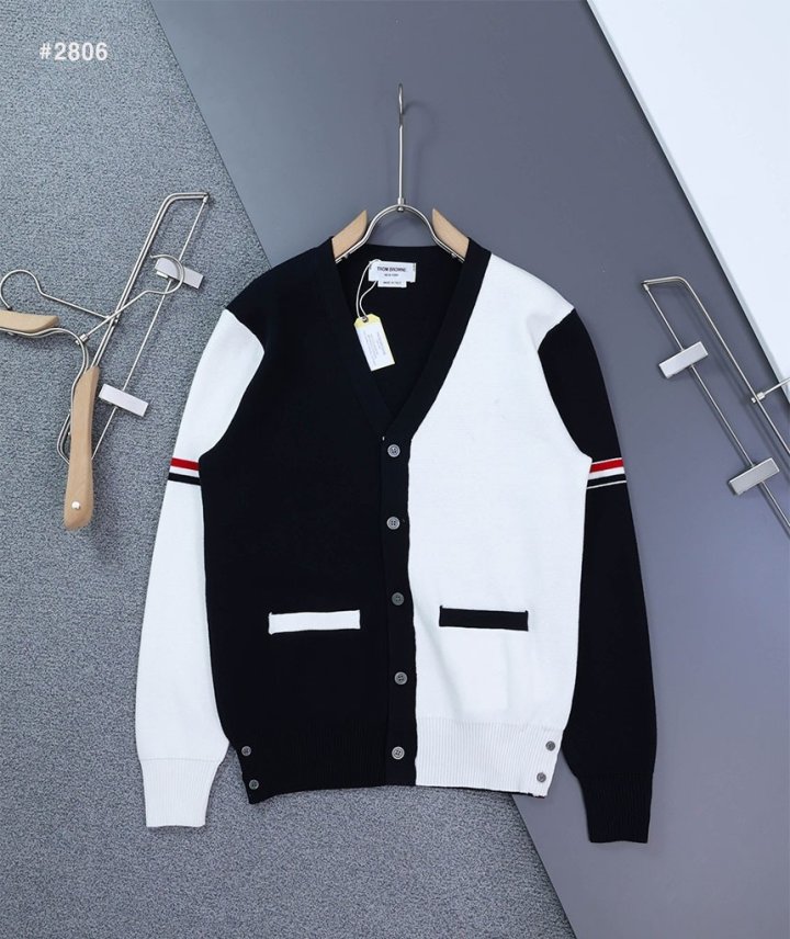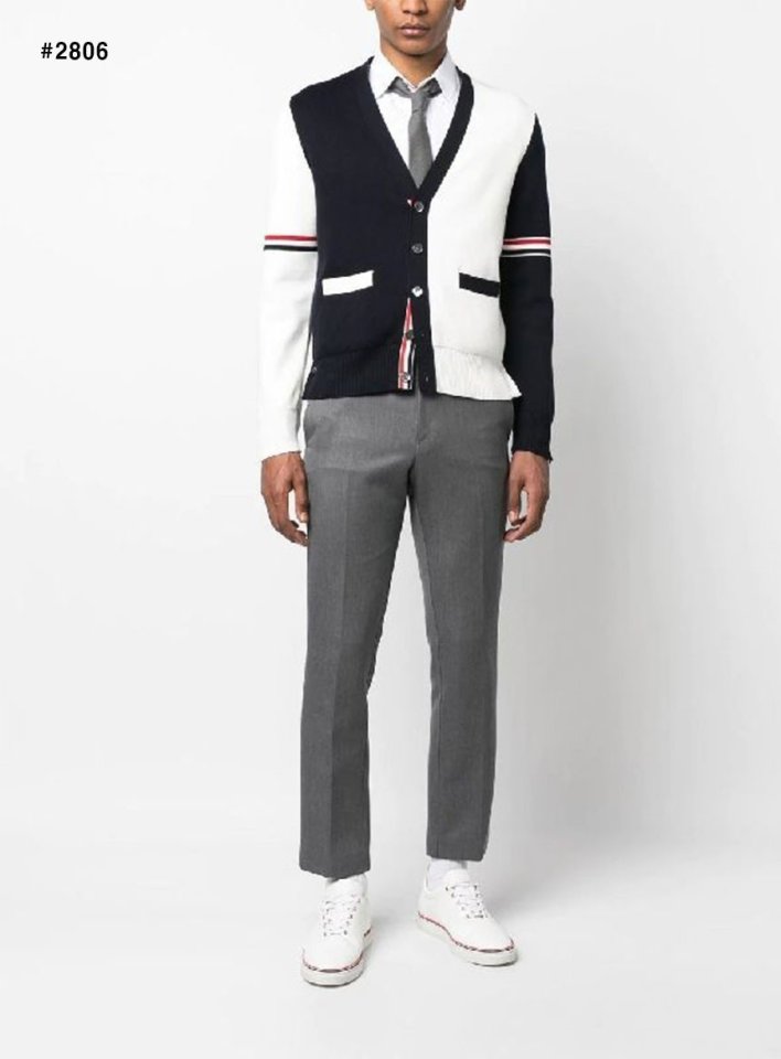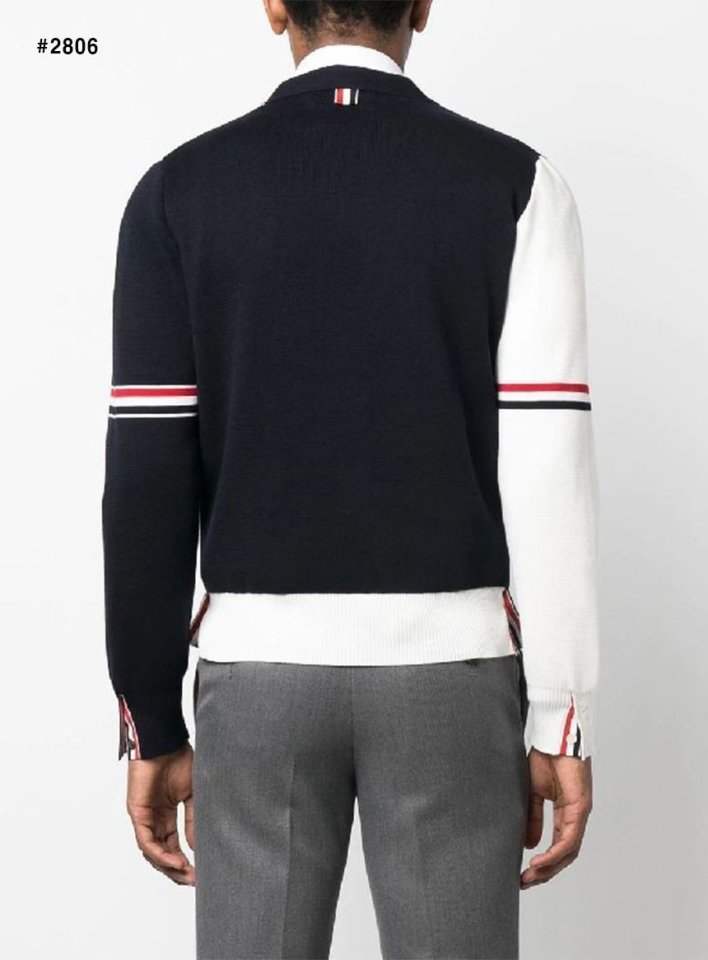 톰. 브라운 투톤 펀믹스 암밴드 브이넥 가디건
