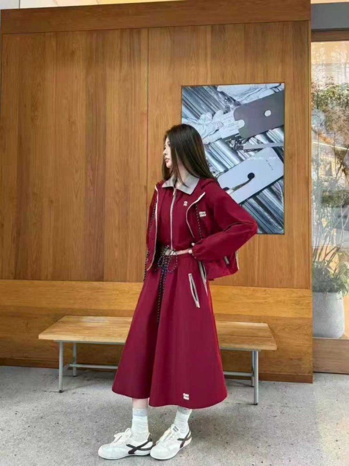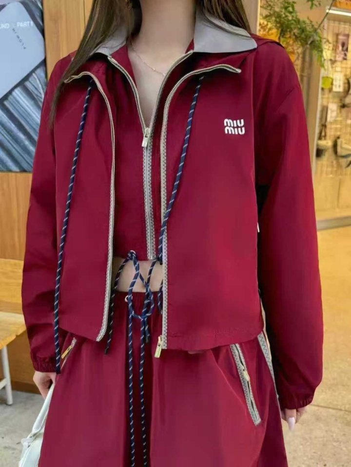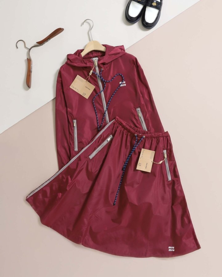 미. 우 드로우스트링 후드 크롭 집업 & 스커트 set