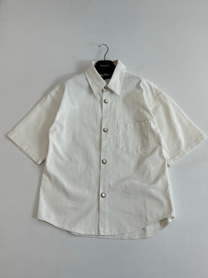 루. 이 화이트 모노그램 자카드 데님반팔셔츠(해외)